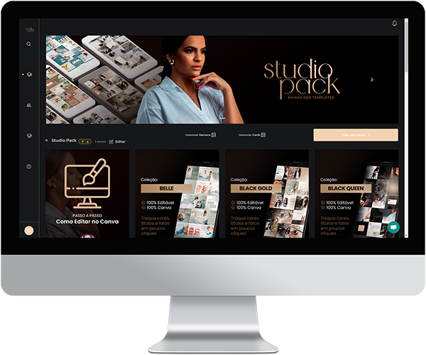 O Studio Pack é a ferramenta essencial para acelerar sua produção de posts, seja você dona de um negócio ou designer.